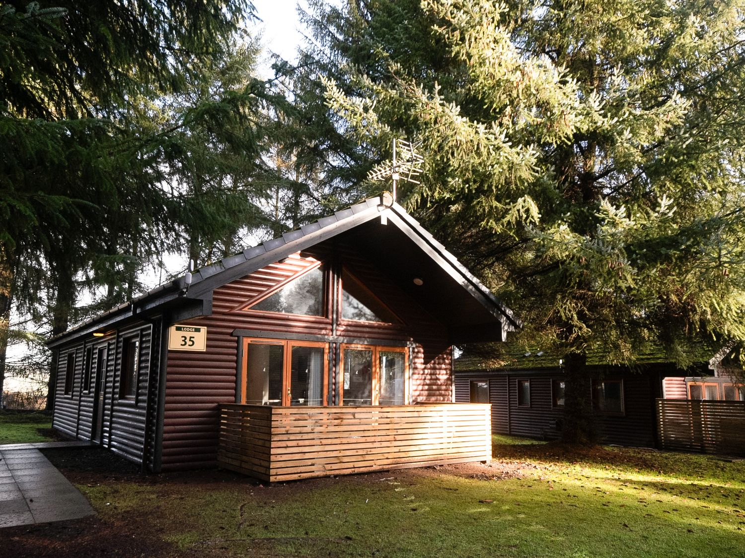 Arrive and pull up near the lodge, with additional parking available in the on-site car park, then step onto the deck to settle into holiday mode.