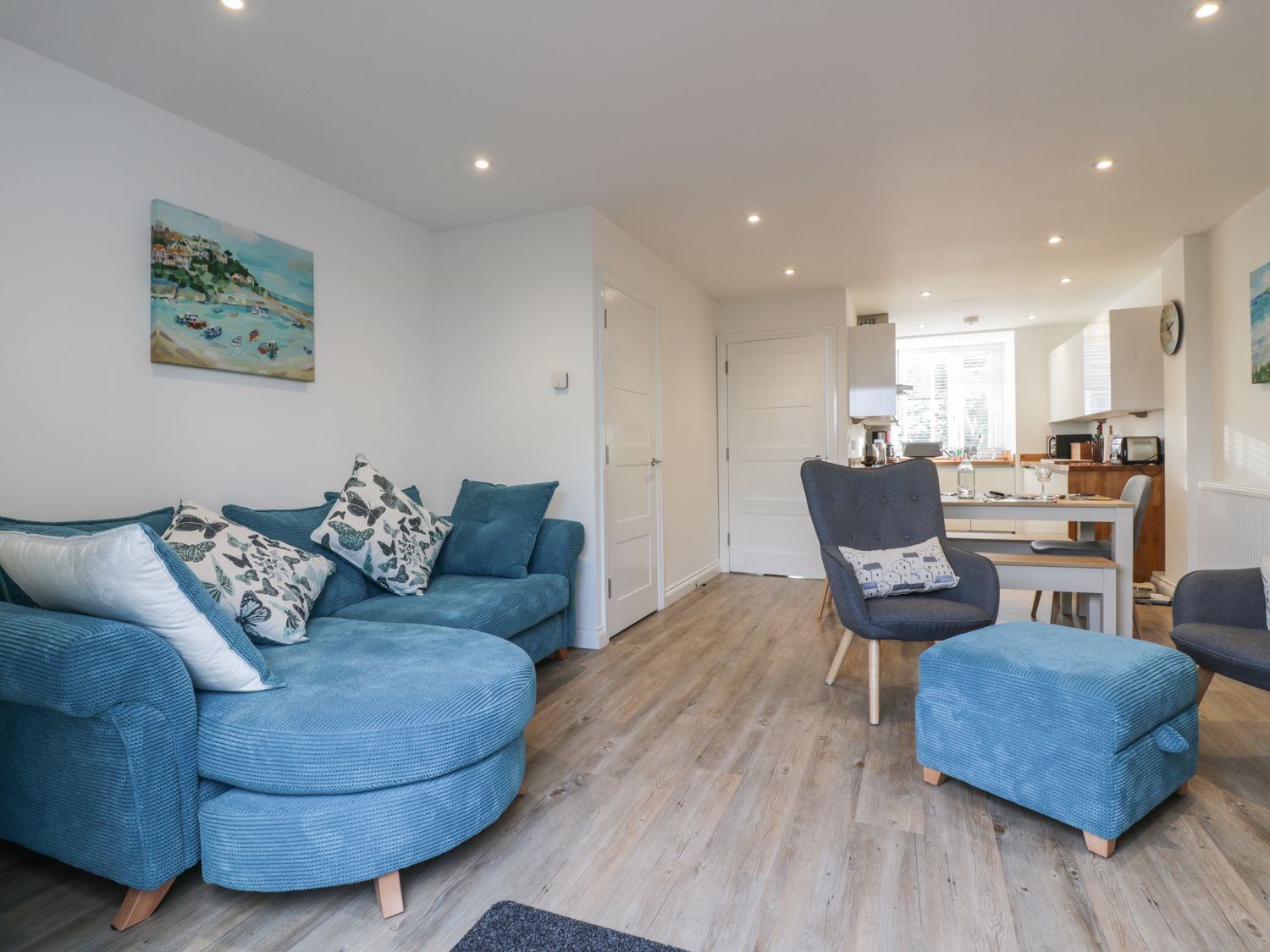 - Open plan living area with kitchen, dining area and sitting area.