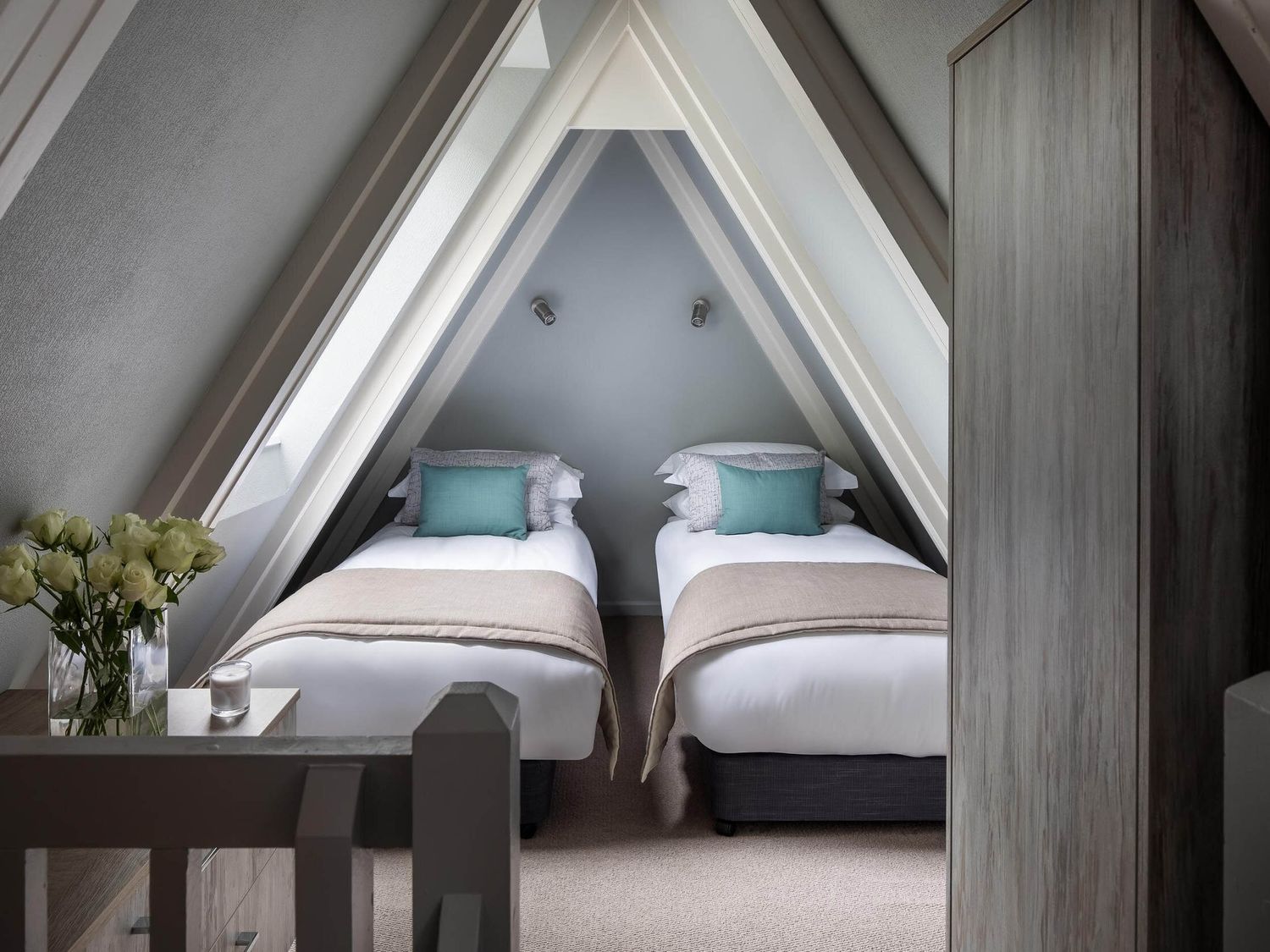The king-size bedroom comes with a TV for your entertainment, while the mezzanine floor houses a snug twin bedroom, perfect for children or additional guests.