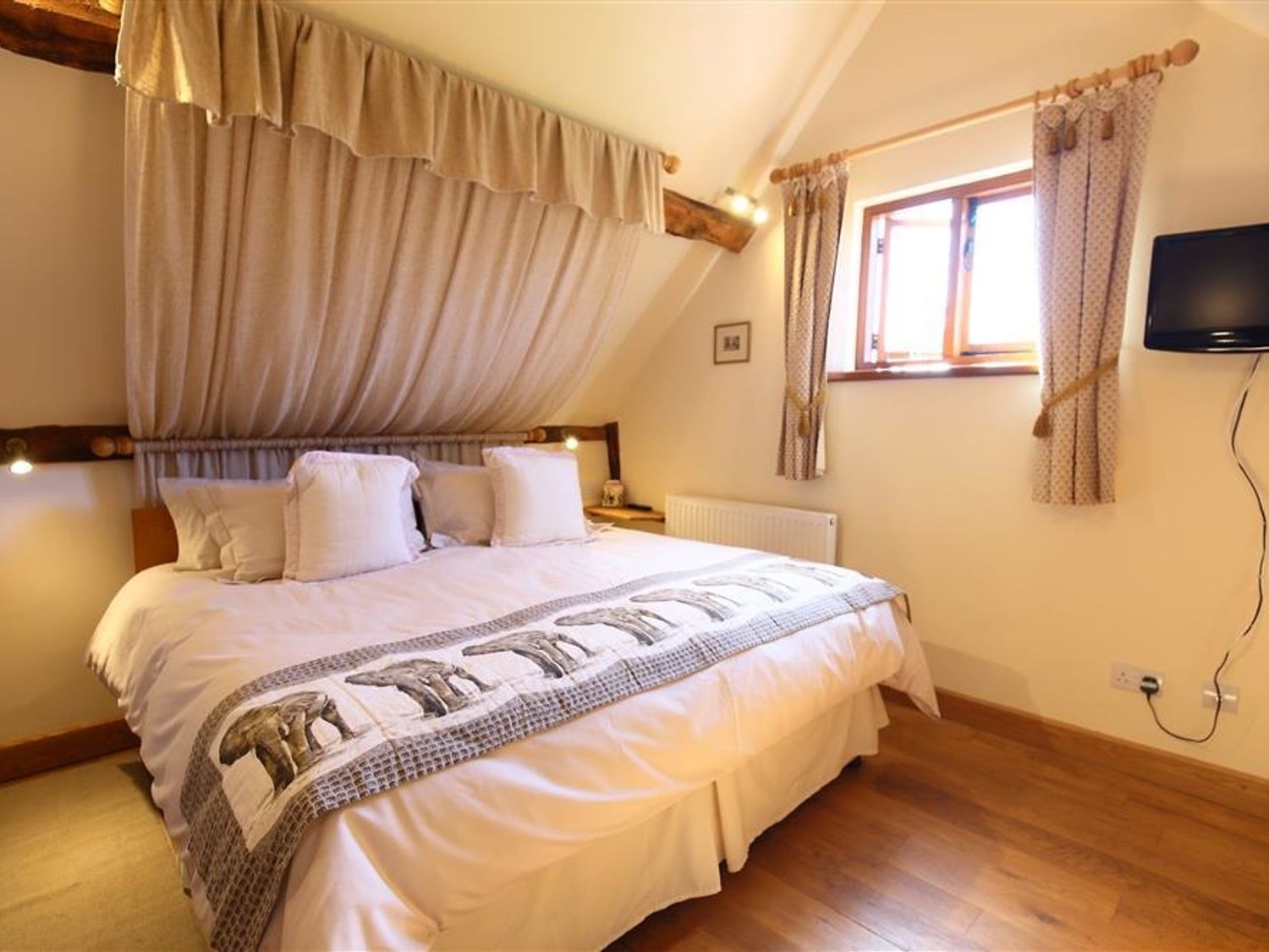 Light and airy due to the high beam ceilings and multiple windows that look over the surrounding farm lands, Elephant Cottage has one bed room on the first floor which holds a superking size double room, along with a shower room and WC.