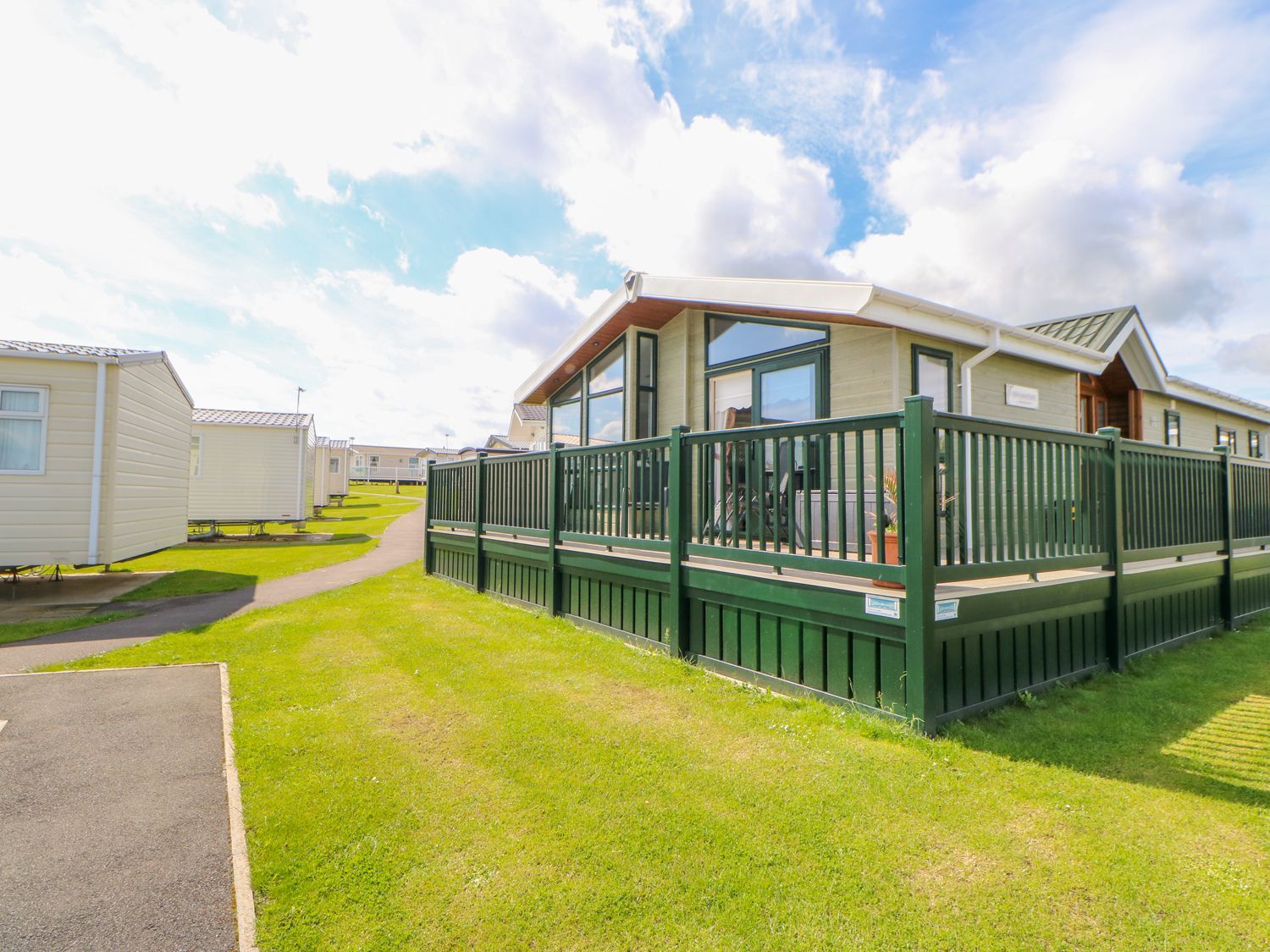 Outside has a wonderful wrap-around decking area with plenty of furniture so you can sit out with a refreshing drink and simply enjoy the views across the holiday park.
