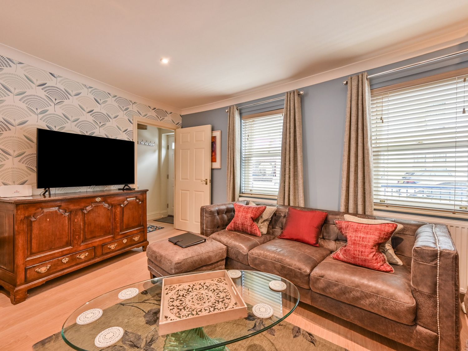 • Open-plan living space with kitchen, dining area and sitting area