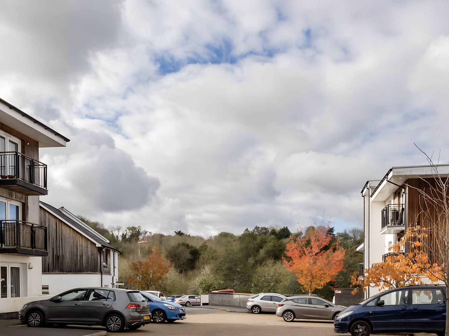 • An outdoor view of buildings and parked cars at 2-Bed Apartment Sleeps 4 with Garden