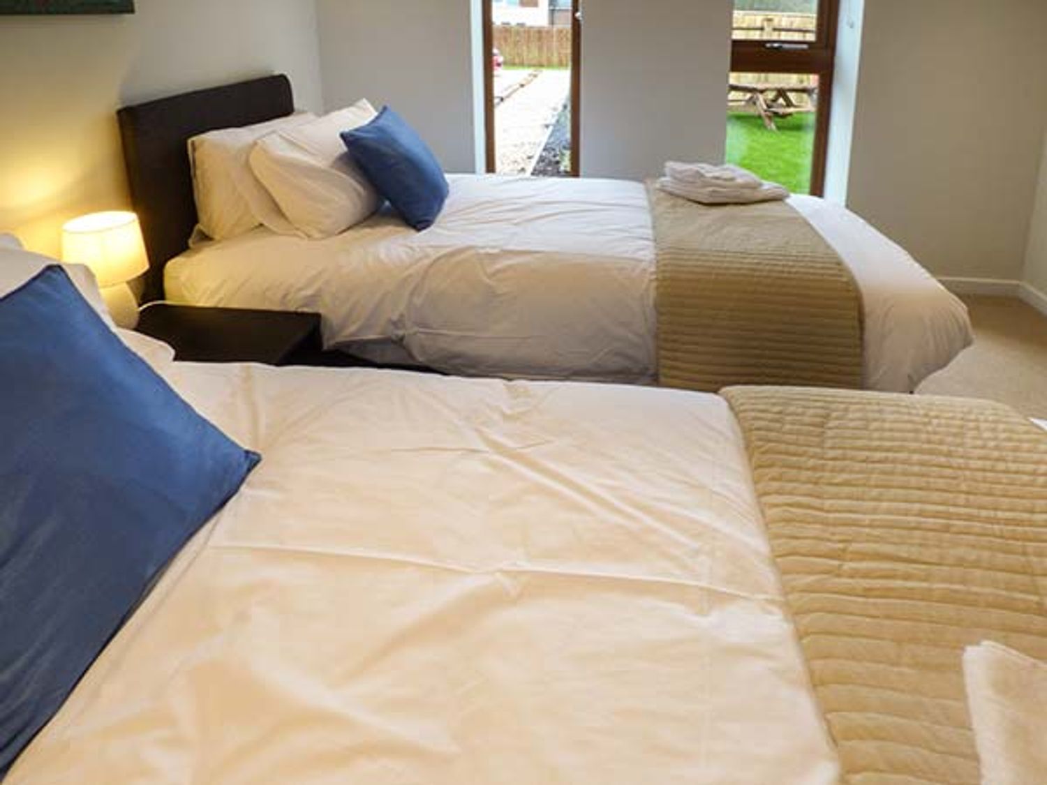 - Three bedrooms: 1 x first floor king-size double with en-suite bath, shower over, basin and WC, 2 x king-size double (zip/link, can be twin on request)