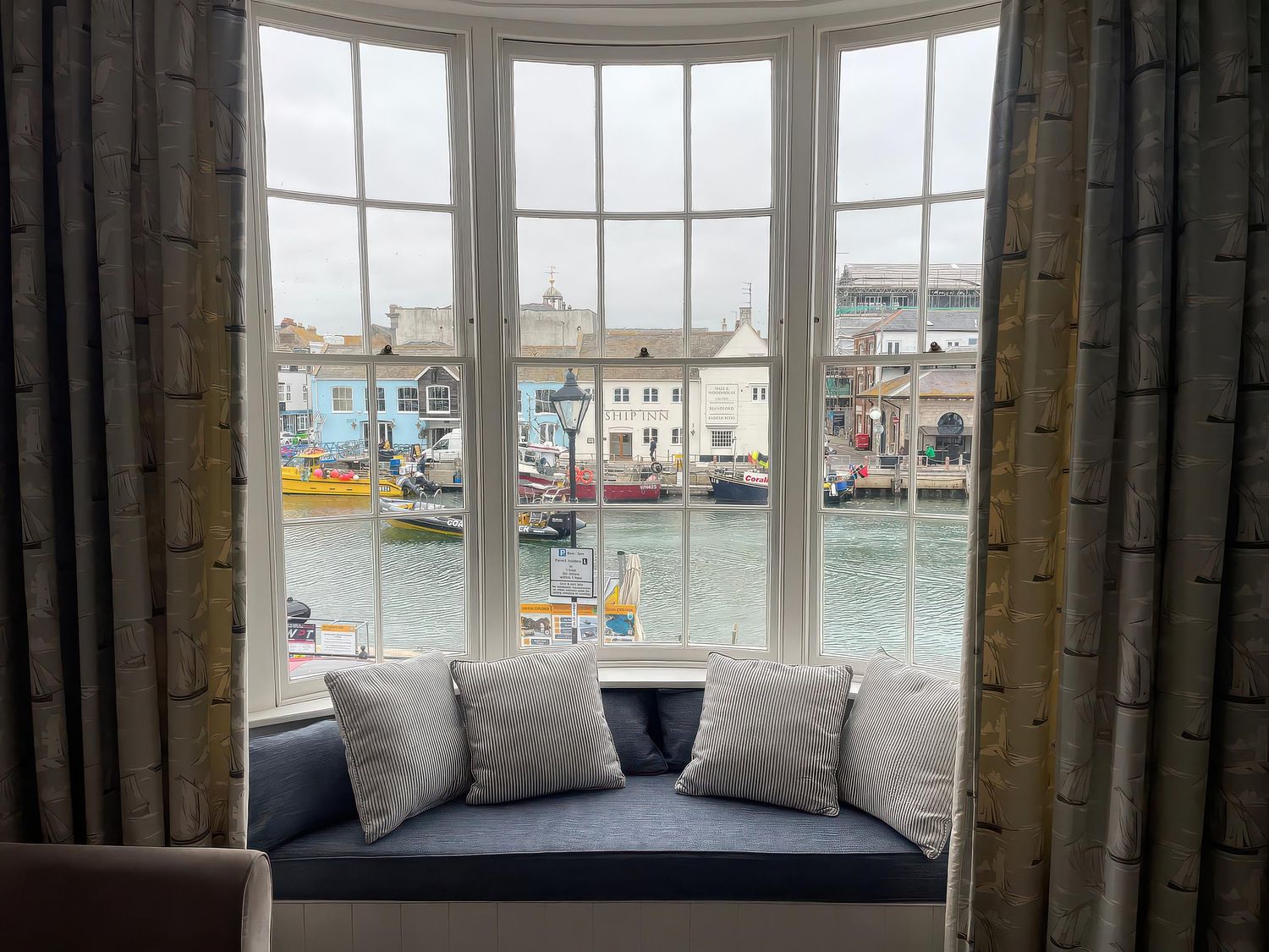 "A lovely Georgian harbour house in the centre of Weymouth, with the most wonderful view we've ever had in a holiday cottage - the yachts and the fishing boats and the old bridge and the lights on the water at night are really enchanting - you can spend hours just watching the world go by."
