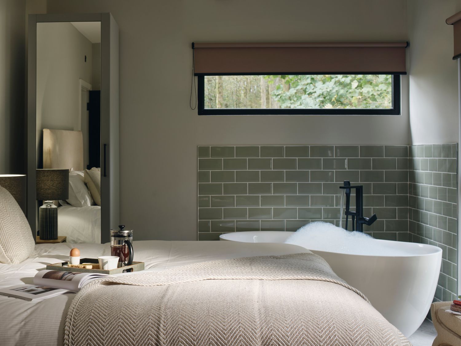 Outside, the balcony provides a quiet perch to take in the woodland views, whether you're enjoying a morning brew or dining alfresco.