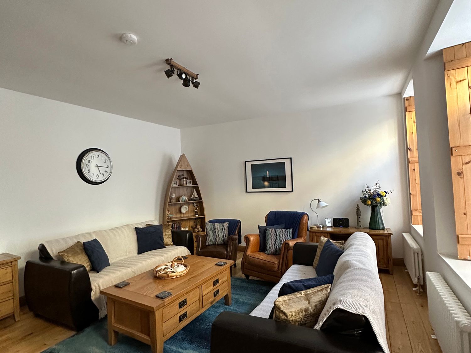 Inside, the wood flooring and feature windows add to the traditional feel with a warm and welcoming sitting room inviting guests to gather to catch up with holiday news or to enjoy watching some TV.
