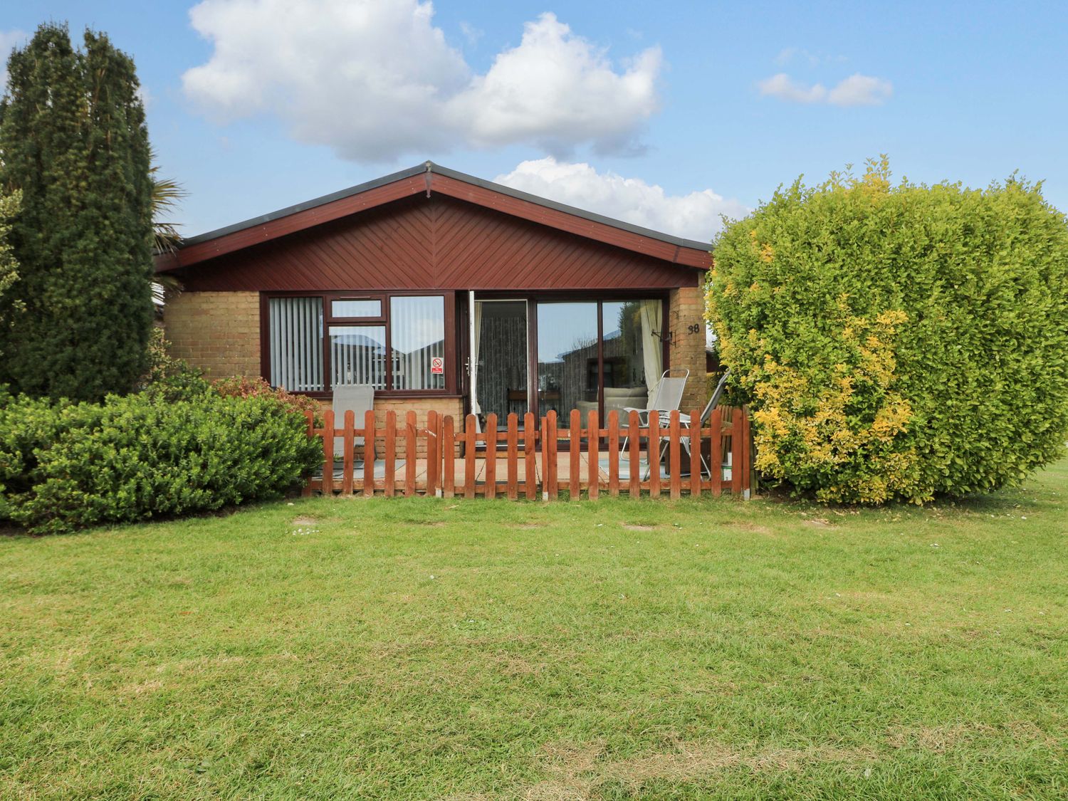 Arriving on the holiday park, you can pull up and park the car close by before approaching this brick‑built property, which sits neatly within its surroundings and feels well established as part of the park setting.