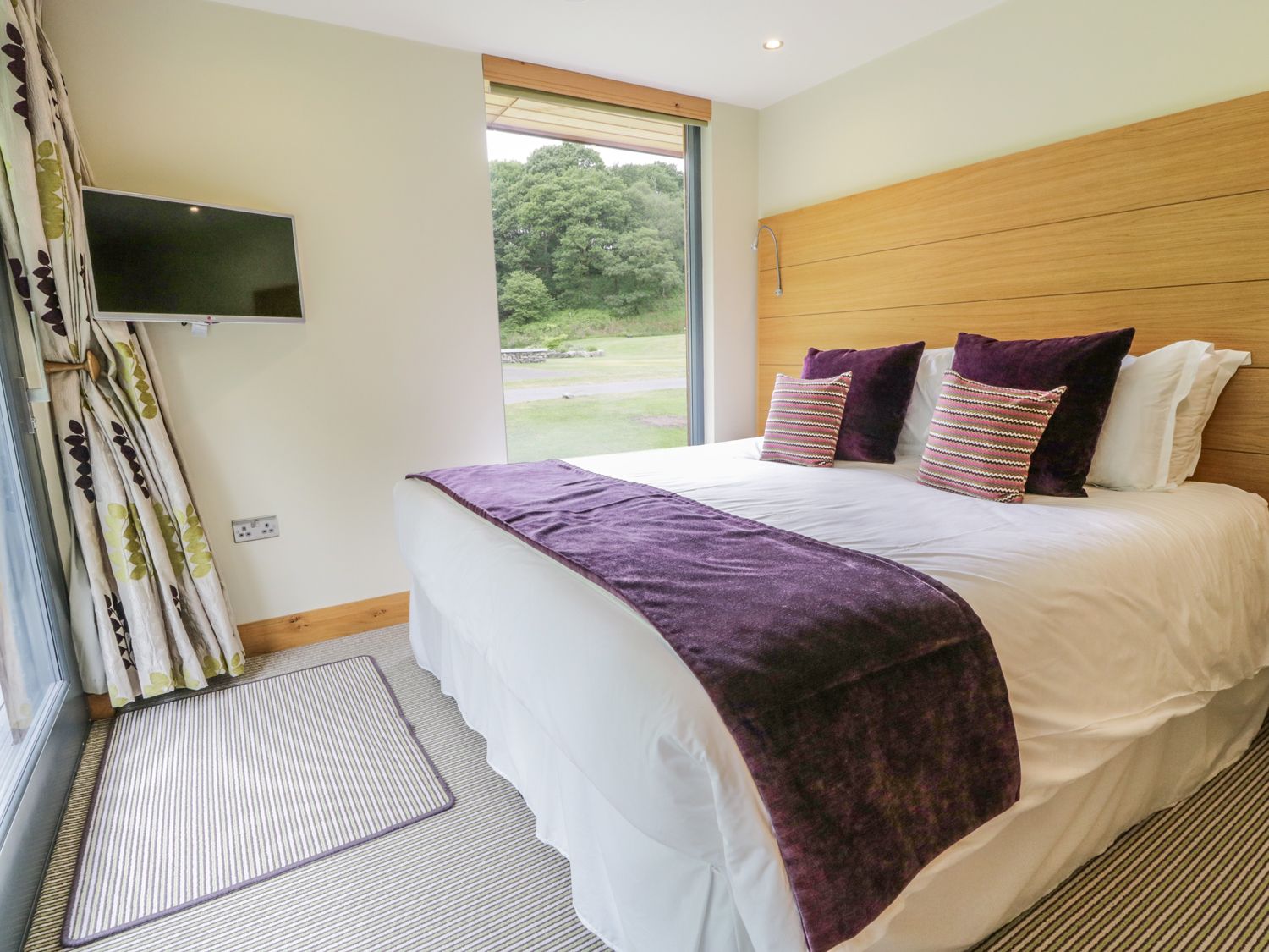 Outside you can find a hot tub surrounded by a marvellous decking and shared lawns, set within an encapsulating dry stone for ultimate privacy where you can enjoy the sun for most of the day next to the lake and woodland views.