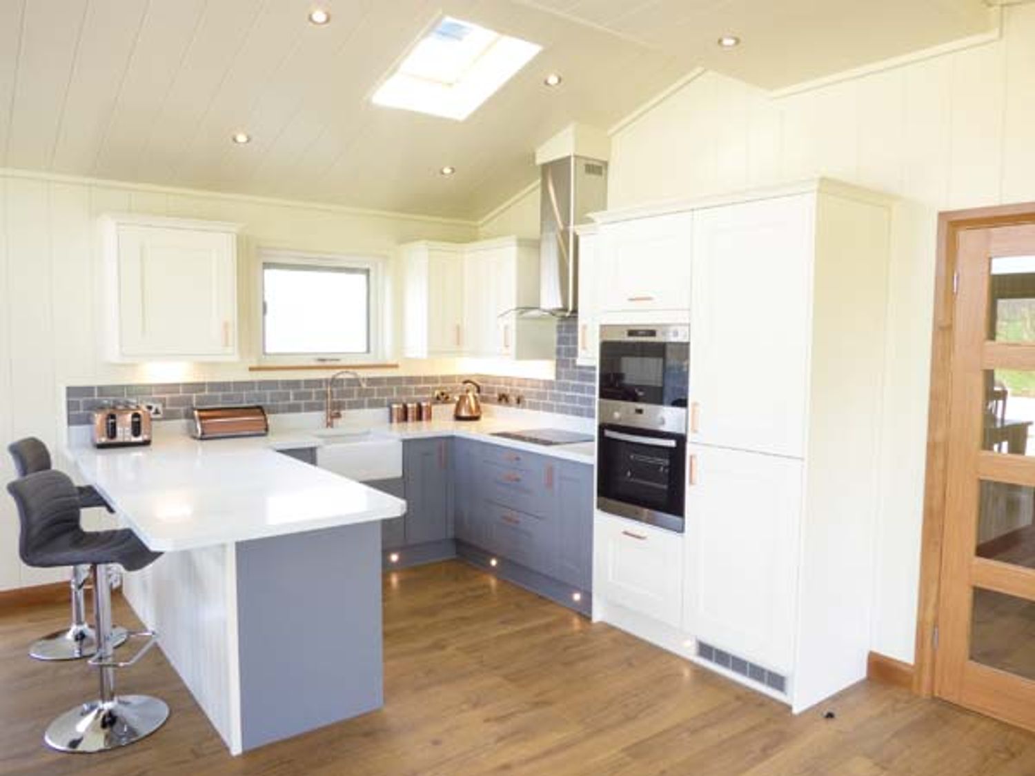 Presented to a high standard with contemporary styling throughout, the lodge is spacious and comprises an open plan living area with a designer kitchen with a Belfast sink, a breakfast bar, dining area and a sitting area with lovely views through the full length windows out across the park to open countryside.
