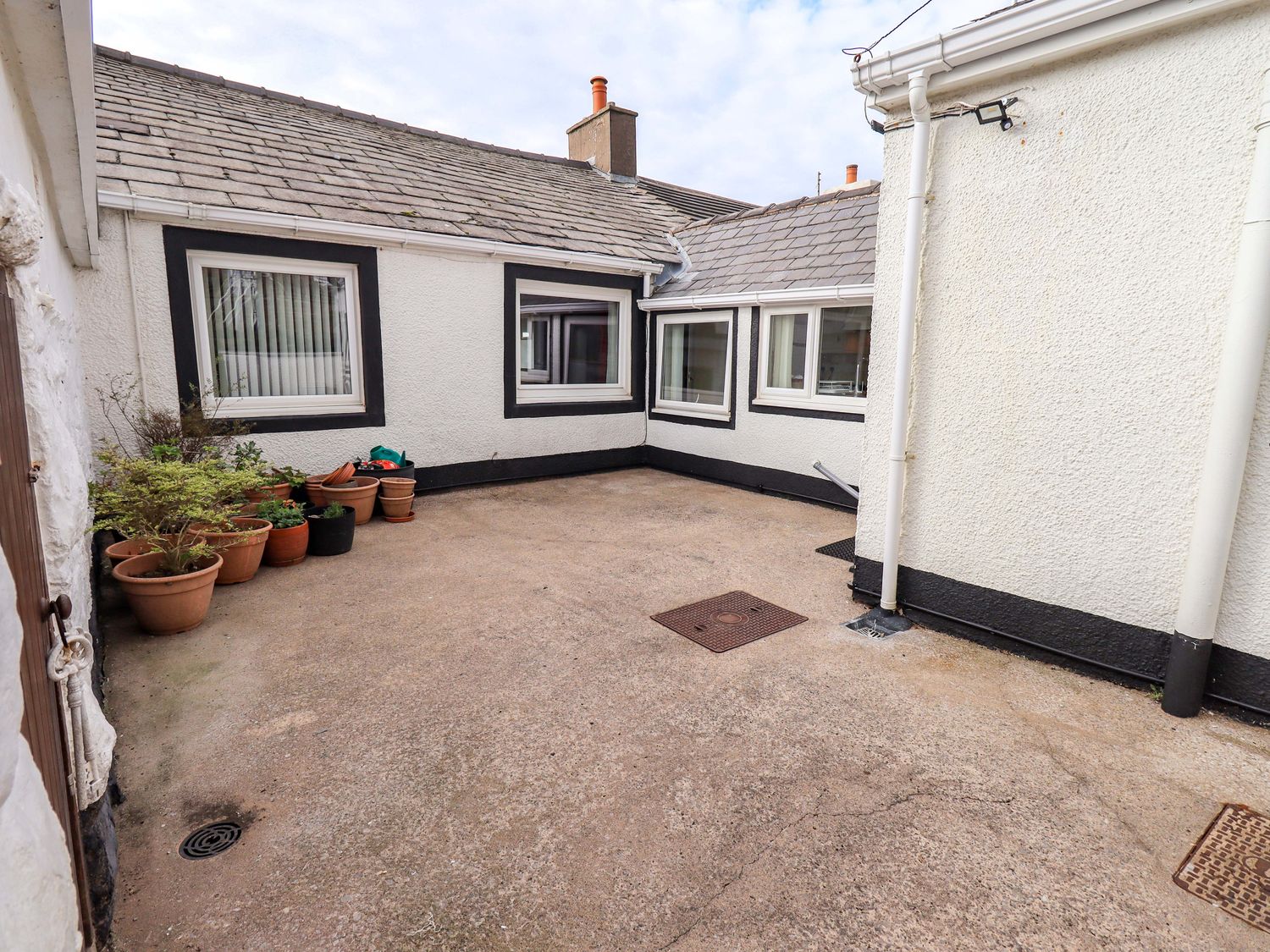 • An outdoor area with potted plants and windows at Solway View Whitehaven