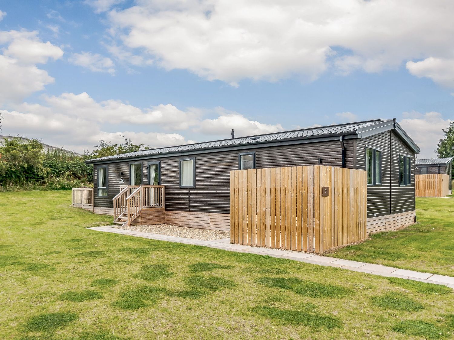 • A modular building with a lawn and fence at Brayford Lodge in Louth
