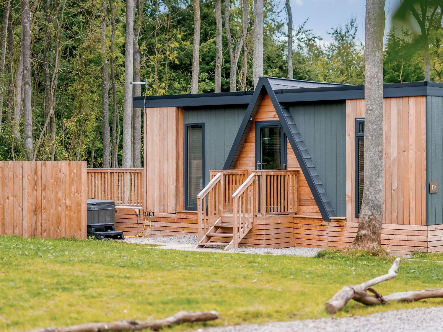 Tennyson Spa, a welcoming lodge on Kenwick Woods Holiday Park near Louth in Lincolnshire, sits quietly among the trees, where the breeze moves gently through the branches and the countryside stretches out beyond.