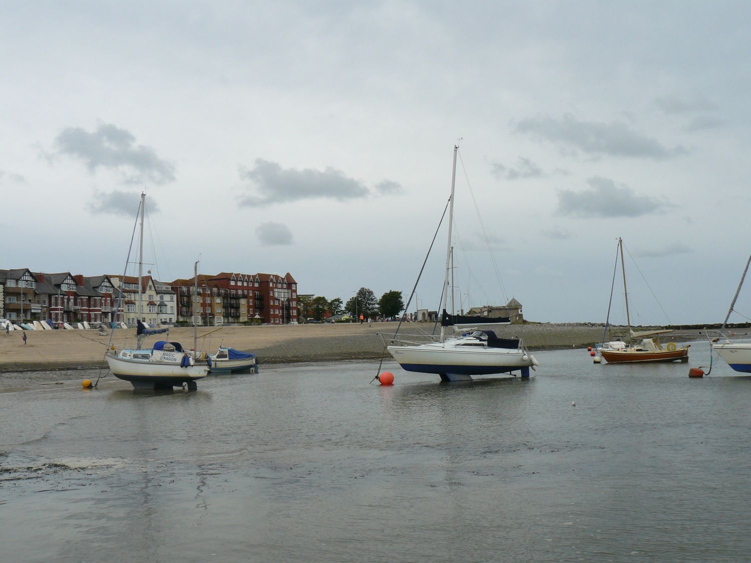 • A coastal scene with sailboats anchored near the shore and buildings in the background at Ocean View Apartment in Colwyn Bay
