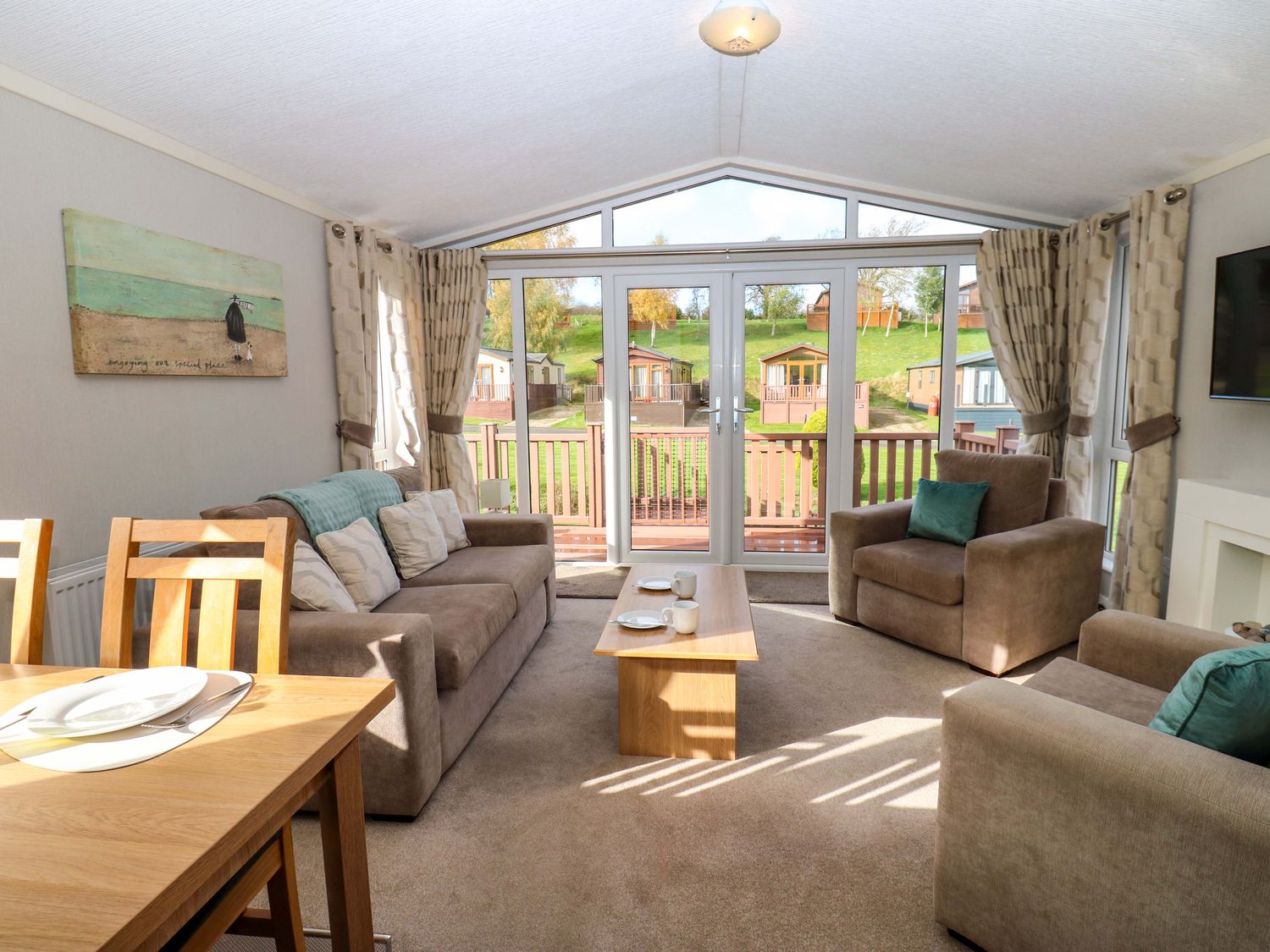 Upon entering this single-storey lodge, you will be greeted by a spacious open-plan area, thoughtfully designed to cater to all your needs.