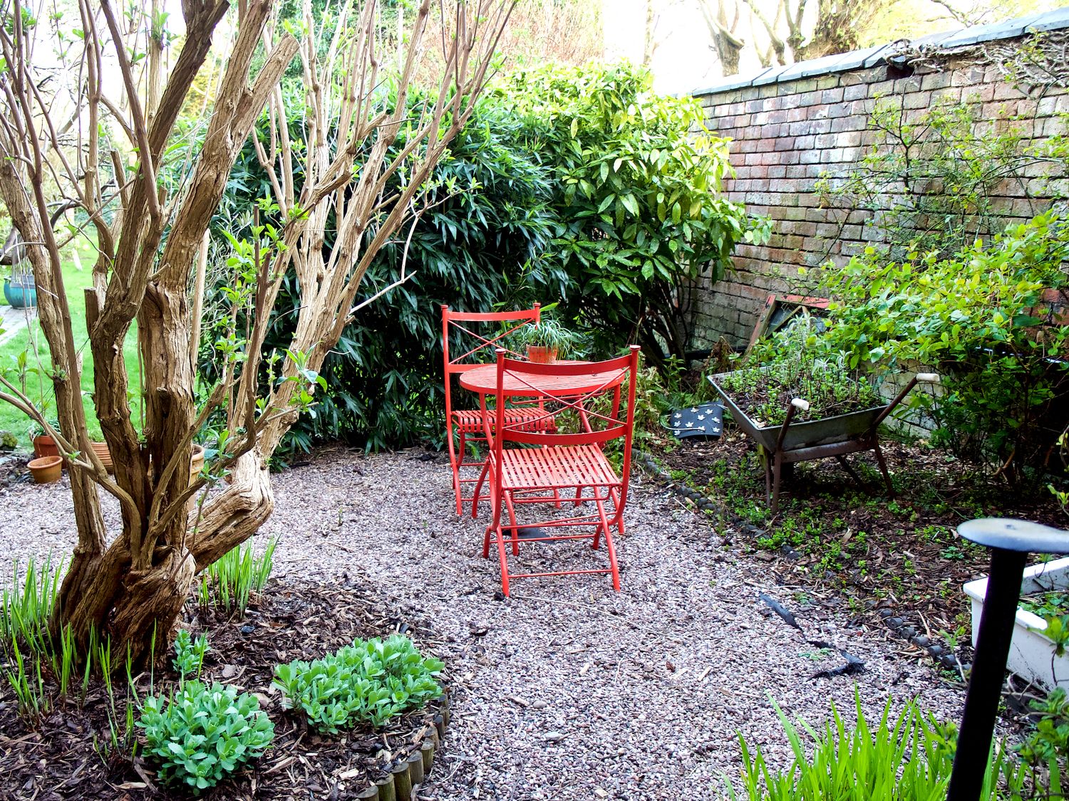 Just down a few steps, the pretty garden area features a table and two chairs, where you can unwind and catch up on the day's adventures.
