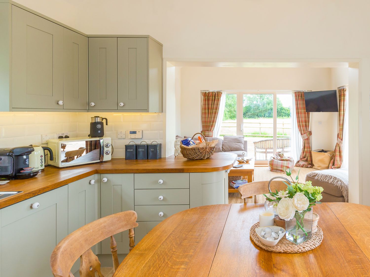 There is a cosy living area with a huge sofa and views to the paddock. The kitchen-dining area is really well equipped. The bedrooms are peaceful with the comfiest bed I've ever slept on. The bathroom is really luxurious. We were gifted a very generous holiday/welcome pack and the owner, Mick, was a delight. We would happily return again and again. 10/10!