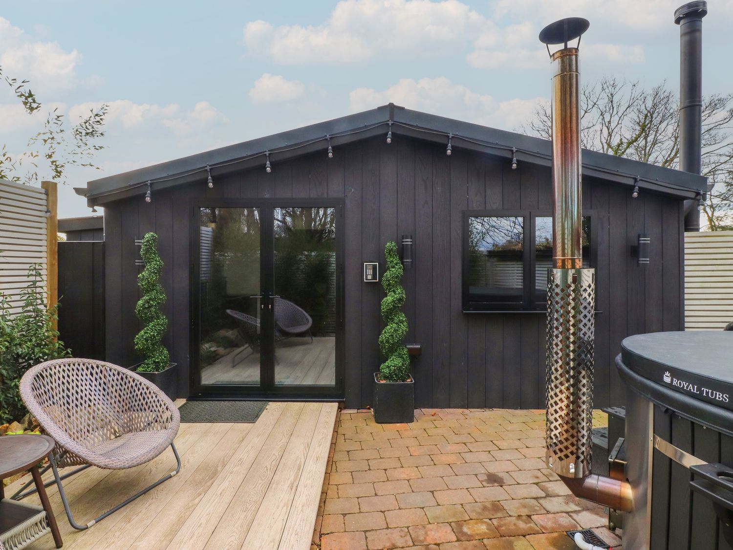 • Enclosed decking with furniture and wood-fired hot tub