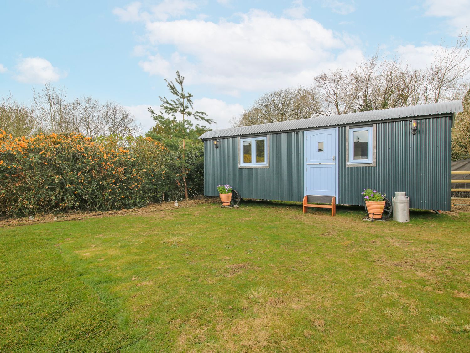 Step through the gate into the enclosed garden and you arrive at your own pocket of space beside the pub, where a lawn, patio and fire pit set the scene for unhurried evenings under the sky.