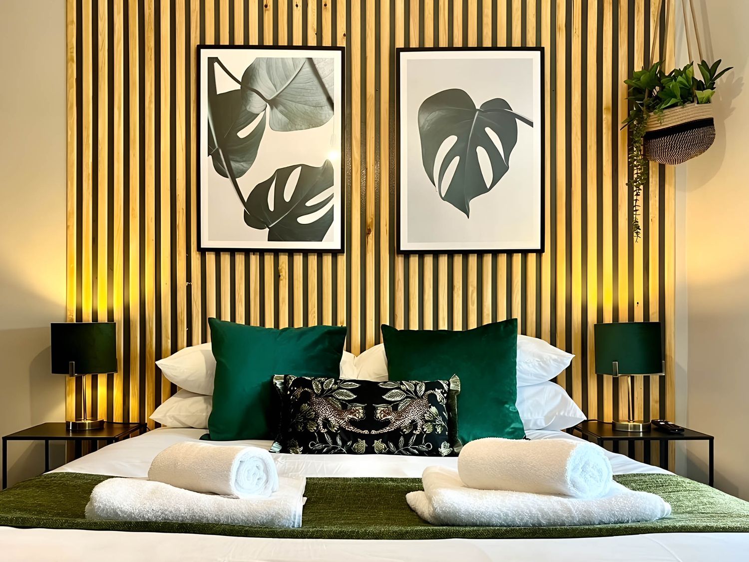 • A bedroom with a bed and wall art at Central Ellesmere - Stay 2 - Parking - PetFriendly