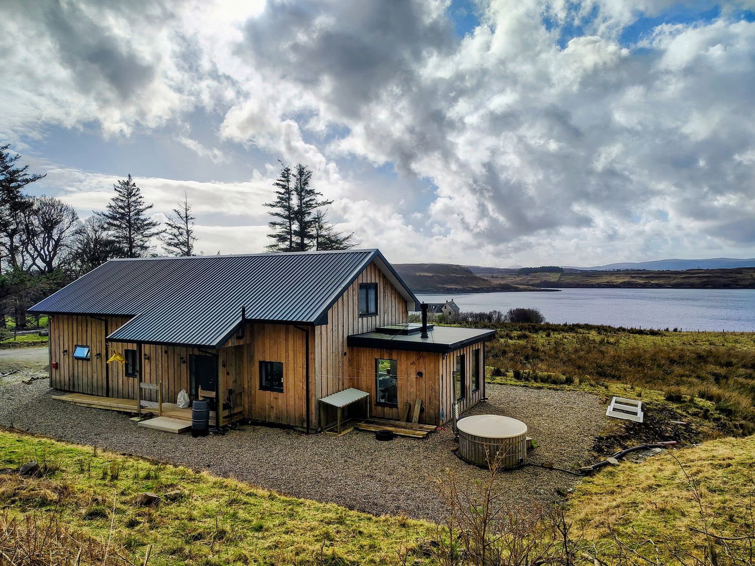 • A house near a lake with a hot tub at Faodail House Kingsburgh near Uig