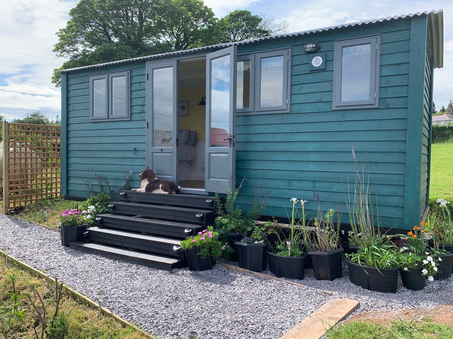 Bluebell Shepherd’s Hut is a charming hideaway tucked within private grounds on a peaceful Anglesey farm, just minutes from Llanfairpwllgwyngyll.