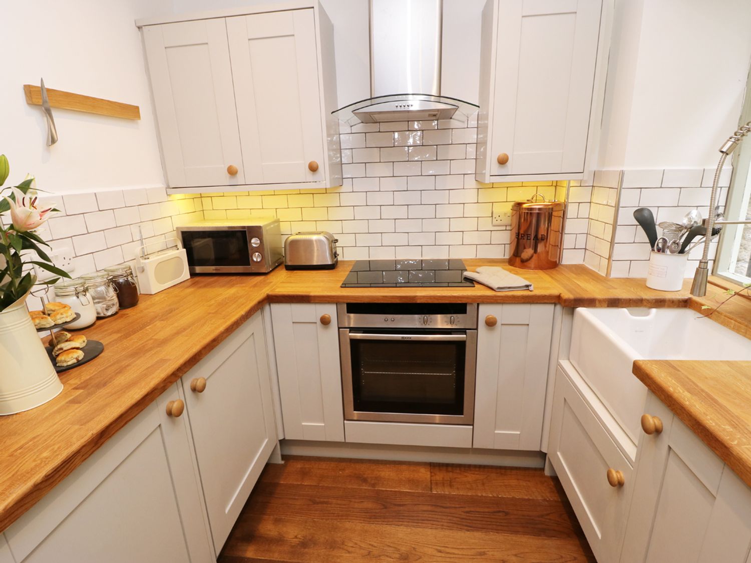 The front door opens directly into a bright, pretty sitting room where you can relax with some TV after a busy day, or snuggle up with a good book by the woodburner.