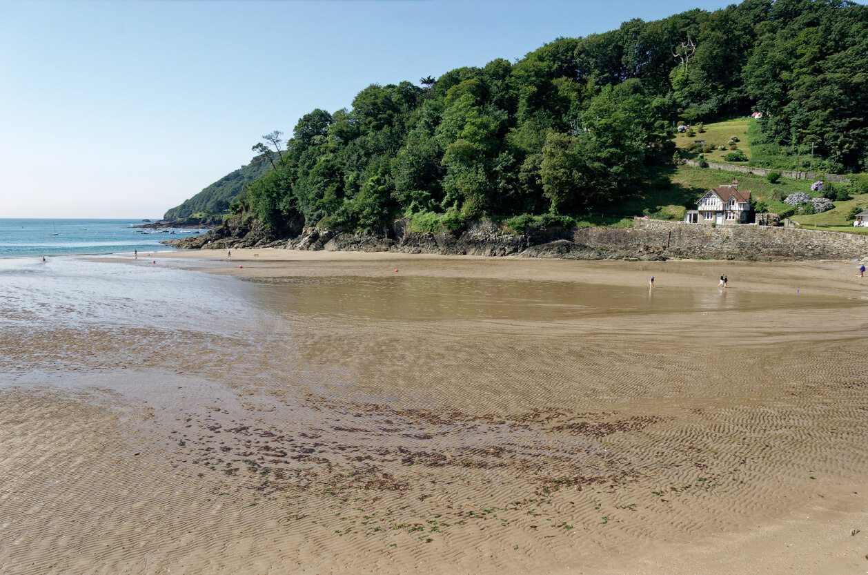 South Sands beach in Salcombe is nestled in an area of outstanding natural beauty at the mouth of the estuary within a sheltered cove making it a popular spot for swimming and watersports. =
