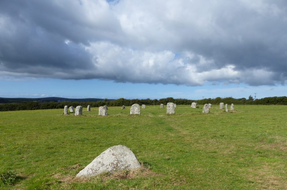 The Cornish name for the circle was Dawns Meyn which may have meant dance of stones. The legend states that 19 maidens were dancing in the field one Sabbath eve to music from two pipers. They continued to dance to the wild music into the next day and were turned to stone for their behaviour.